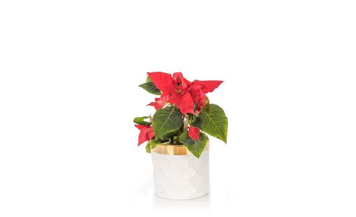 עציץ חלבלוב מלבלב עם פריחה אדומה משגעת מגיע עם כלי מהודר.