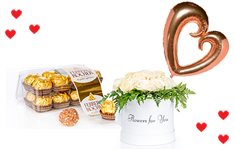 מארז קופסת וורדים ססגוניים עם פררו ובלון