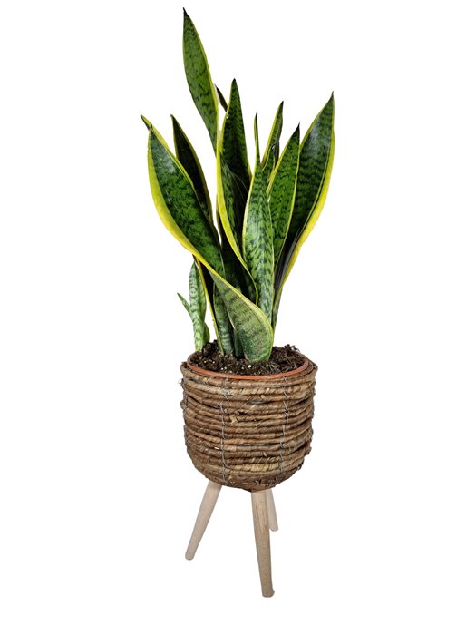 סנסיווריה מגוונת גדולה בסלסלת רגלי עץ