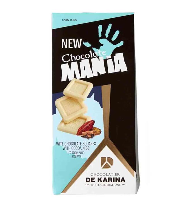 ניו מניה ריבועי שוקולד לבן נימוח ופולי קקאו קלויים