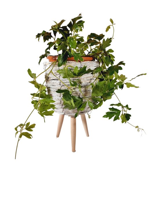 גפנית מטפסת בסלסלת רגלי עץ מעוצבת
