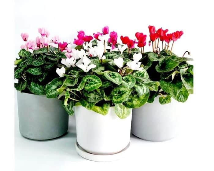 מארז 3 עציצי רקפות בכלי קרמיקה מעוצבים.