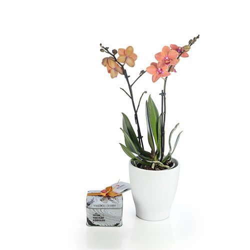 מארז סחלב מולטי 2 ענפים בכלי קרמי ושוקולד