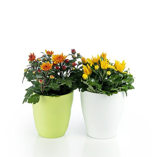 מארז 2 עציצי חרציות בכלי קרמיקה